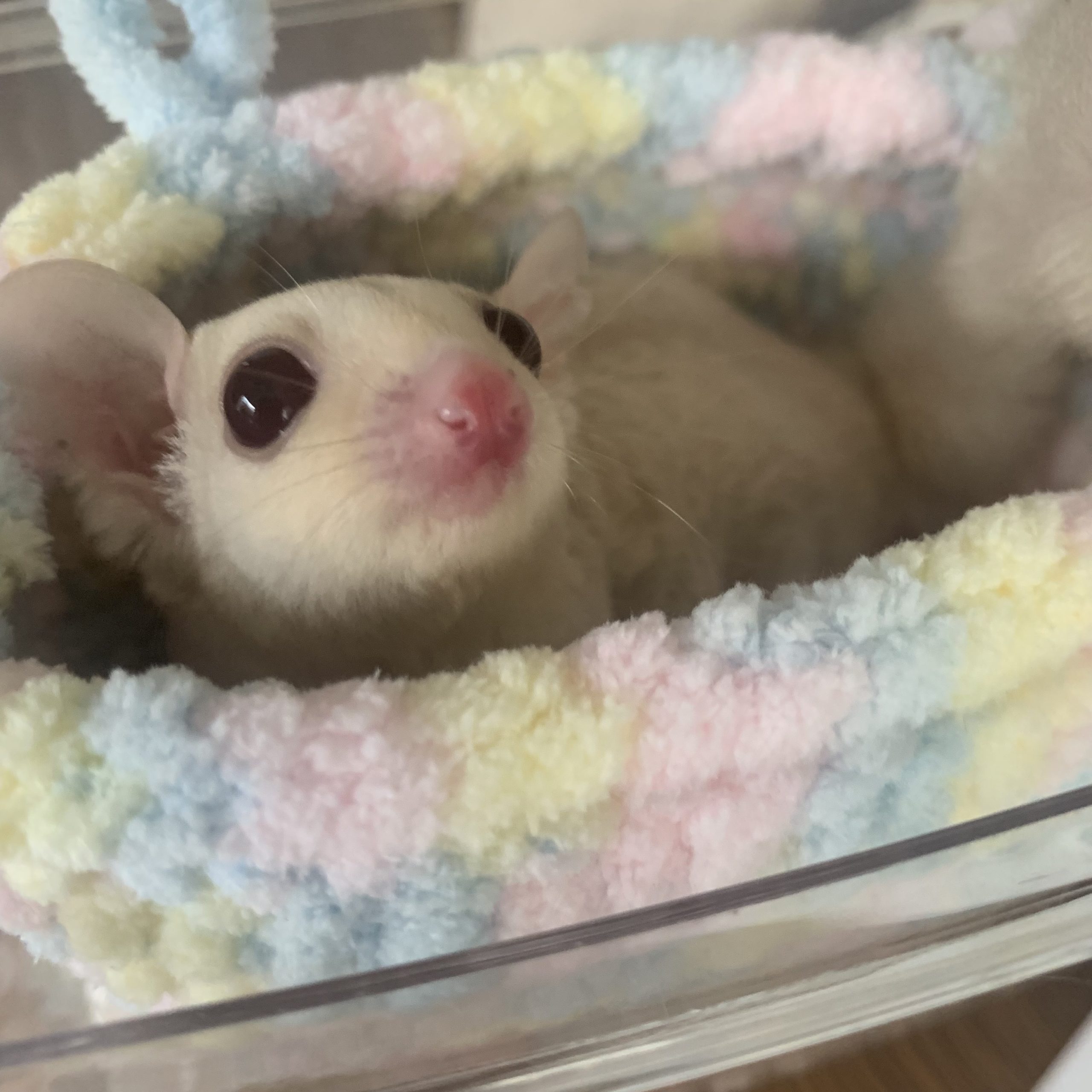 ヴィルちゃん🎈 フクロモモンガ 2025.09.01 なんとまぁ、本日8/16です。(事後書き込み) 先月お迎えされたミルちゃんのお友達にとお迎えくださりました😊 ミルちゃん結構な強気レディだったけど、1ヶ月で結構飼い主さんに心許していてとても嬉しい…ヴィルちゃんも安心して送り出せました😊 仲良くしている画像も送ってくださって、嬉しい限りです。 末永くよろしくお願いします🍀*゜